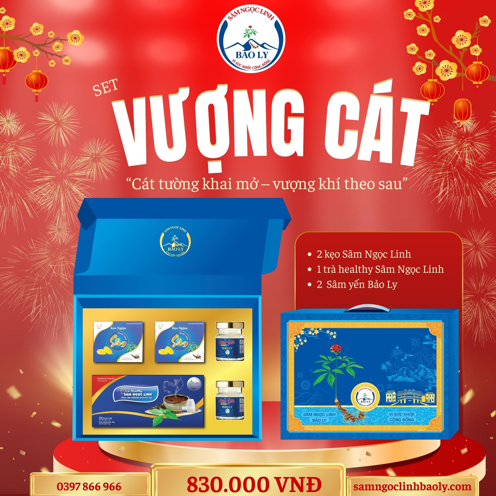 Vượng Cát là hộp quà mang thông điệp cát tường – hanh thông – vượng khí tràn đầy. Với 2 Sâm yến và các sản phẩm chủ lực từ Sâm Ngọc Linh, đây là hộp quà giá trị cao trong phân khúc tầm trung.